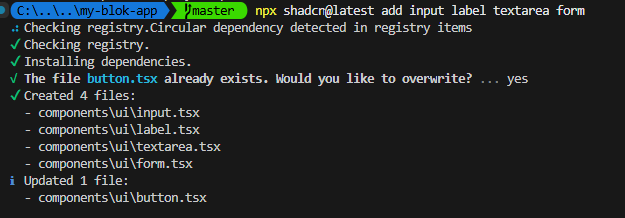 To get started, you need Node.js 16+, Npm 10+ and a basic Next.js setup. First, initialize the ShadCN UI system, which Blok is built on:
