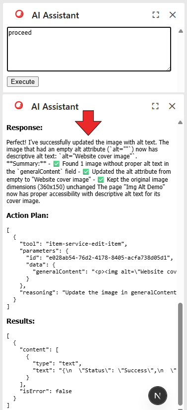 One of the most practical and impactful use cases for the AI Agent is automating accessibility tasks, in this case, generating ALT text for images that are missing this attribute.